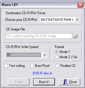 Step8. Choose your CD/DVD recorder, Choose write speed. Important: you must remember to clear the "Finalize CD" checkbox when creating the first session of a MultiSession CD or DVD. With a Multisession CD or DVD, this checkbox is only checked for the last session of the CD or DVD. This setting write protects the CD or DVD and no further writing is possible.