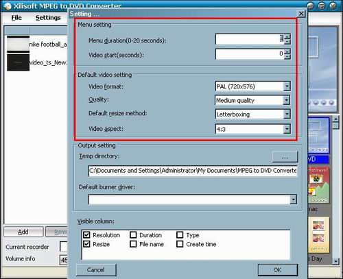 Xilisoft MPEG to DVD Converter is fast, easy to use MPEG to DVD conversion tool, which can convert MPEG to DVD, and burn it to DVD disc (playable on home DVD player). The MPEG to DVD Converter allows you to specify NTSC or PAL, adjust 4:3 or 16:9 video aspect, and burn either DVD disc or ISO file.