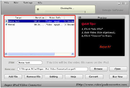 Step1. Download the fastest video iPod converter software Super Video to iPod Converter from http://www.qweas.com/download/video_dvd/video_converters/super_ipod_video_converter.htm
