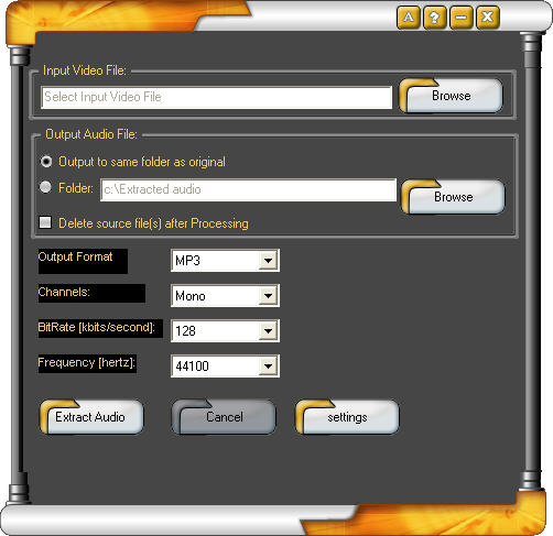 With OSS Audio Extractor you can extract the audio from AVI, MPEG, MPG, WMV, ASF to WAV, MP3, OGG, WMA and change the quality and settings of the supported audio types above. User Guide and FAQ - More Details |
