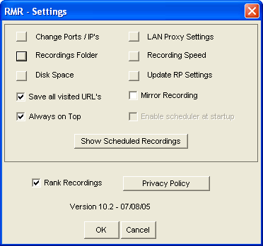 RM Recorder has a few ways to fine-tune the recording operations, all accessible by clicking the Settings button. Requirements