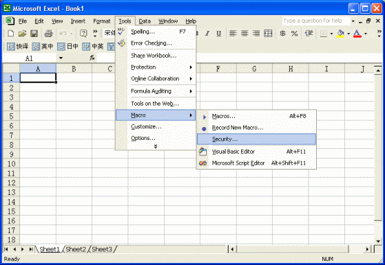 Go to Tools... Macro... Security...