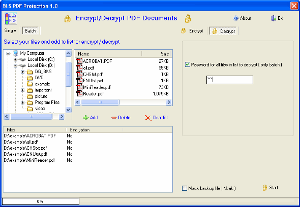 BLS PDF Protection 1.0 - Screenshots of encrypting pdf documents