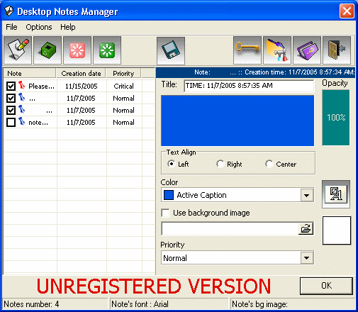 Windows desktop of running Desktop Notes. User Guide and FAQ - More Details |