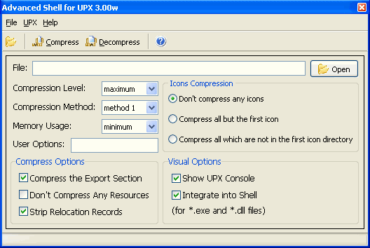 Advanced Shell for UPX 3.01Advanced Shell for UPX 3.01 is a friendly front-end Windows shell for UPX version 3.01.
