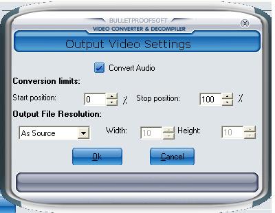 The output video setting window allows setting conversion limits and file resolution. User Guide and FAQ - More Details |