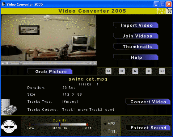 This is the main window of Video Converter 2005. In this window, users join or convert video, extract window and grab picture from video, etc.