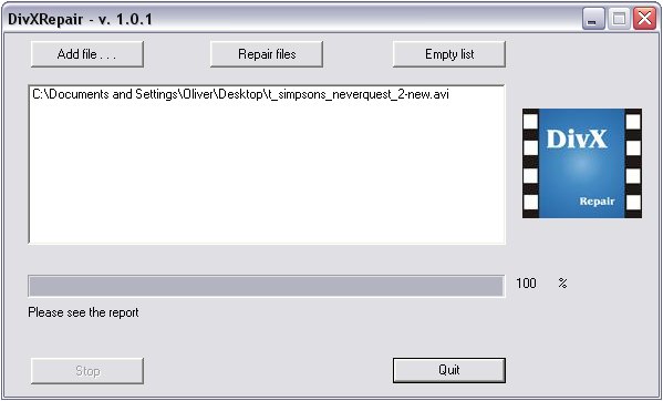 Home > Audio & Multimedia > Audio Encoders/Decoders > DivXRepair