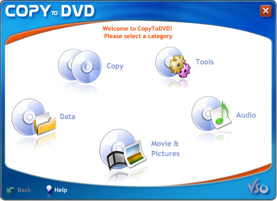 Copy, burn and backup data, photos, audio and videos on CD or DVD. CopyToDVD has you need to satisfy your burning needs. Select the type of project you want to burn, add your files and go. Your burning can be done easily and successfully.