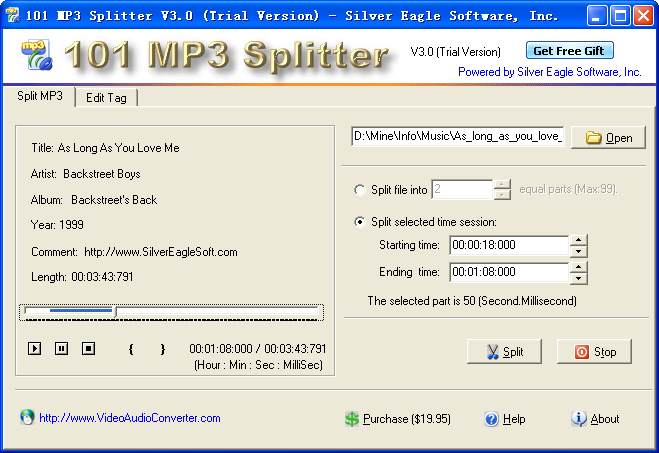 POP MP3 Splitter offers you to split your mp3 files as you wish, and then you can