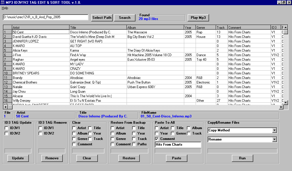 Home > Audio & Multimedia > Other > Mp3 ID3v1v2 Tag Edit & Sort Tool