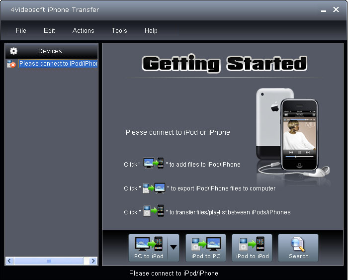 4Videosoft iPhone Transfer sync to iPhone, iPhone 3G,, as well as Pod, iPod nano, iPod classic, iPod shuffle, iPod touch, iPod Touch.
