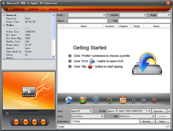 3herosoft DVD to Apple TV Converter Screenshots