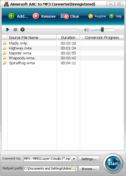 Home > Audio & Multimedia > Rippers & Converters > Aimersoft AAC to MP3 Converter > Screenshots