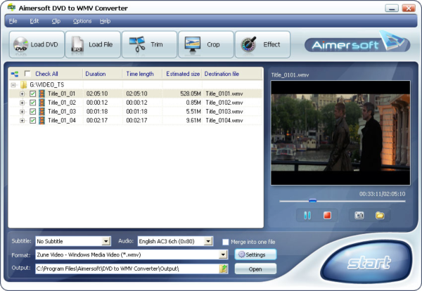 Aimersoft DVD to WMV Converter is powerful DVD to WMV converter and DVD to WMA converter software which helps you rip and convert DVD to WMV video file formats or extract WMA audio file formats with excellent quality.