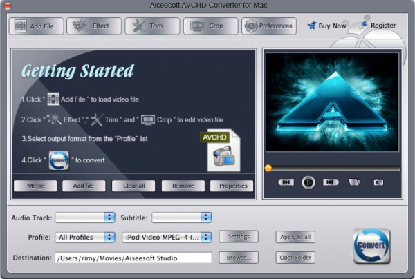 Aiseesoft AVCHD Converter for Mac, advanced Mac AVCHD Converter for Mac OS X users, which can convert AVCHD video to your portable players, or edit your AVCHD video in professional way.