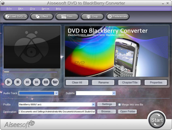 Aiseesoft DVD to BlackBerry Converter is one of the Best DVD to BlackBerry Converter software, which can easily convert DVD to BlackBerry AVI, 3GP, MP4, MP3, AAC, WMA formats in the highest conversion speed and image/sound quality.