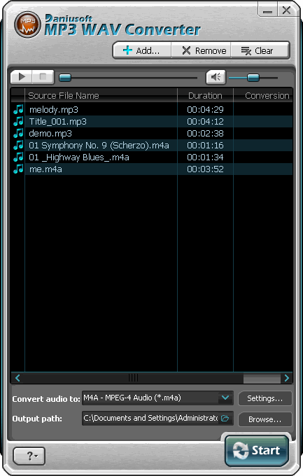 Daniusoft MP3 WAV Converter is a free audio converter that supports all popular audio formats. This excellent application is powerful yet it is totally free. It supports the following input:wma, m4a, m4b, aac, wav, mp3, ac3.