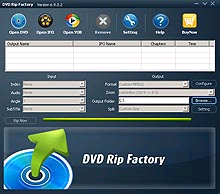 DVD Rip Factory is a professional DVD ripping software to convert your favorite DVD movies into popular video formats. With a very easy to use interface you also can convert VOB, IFO files into above formats.