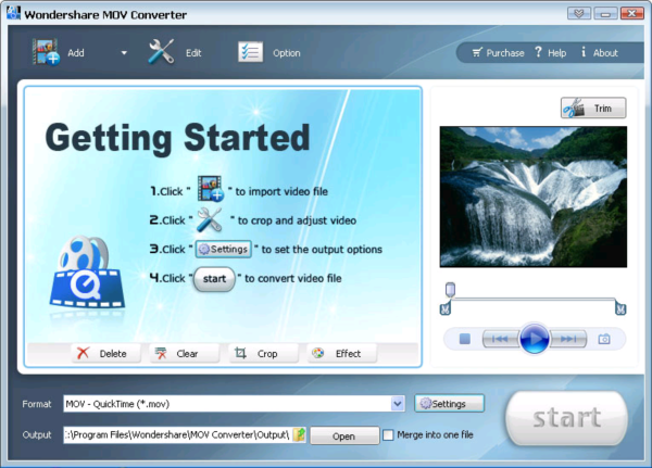 Wondershare MOV Converter is a powerful MOV converter that can convert all kinds of video formats to MOV format. It can convert AVI to MOV, MPEG to MOV, WMV to MOV and support various other formats including Divx, XviD, MPG, DAT, RM, RMVB, and ASF.
