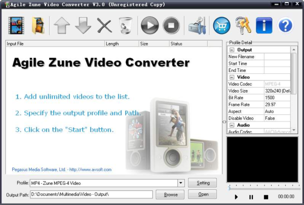 Agile Zune Video Converter is the best video conversion software that converts video files to Zune video (MP4).It provides an easy and completed way to convert all popular video formats e.g. AVI, MPEG, MPG, WMV, Xvid, VidX, ASF, MOV, VOB, ect to Zune