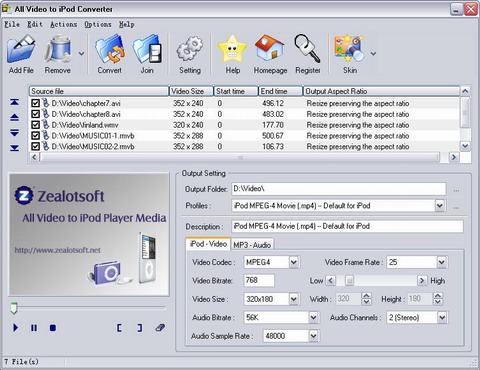 Home > Audio & Multimedia > Video Tools > All Video to iPod Converter > Screenshots