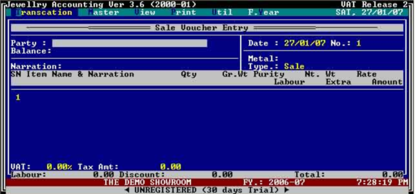 Jewellery Accounting Software with Stock Management System. In this software you may have printout of Sale Bill as you desire. This software helps into handling the stock of old and new Gold & Silver and Jadau & Simple Ornaments of these Mattel.