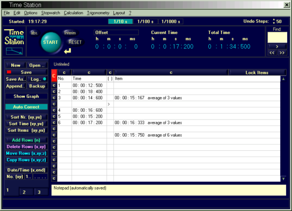 Time calculator and spreadsheet, graph, saving and export to csv, MySQL and html