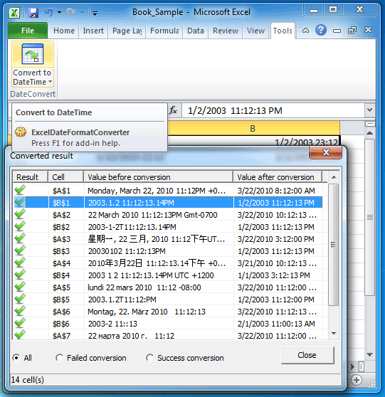 For example, if you are working in America, but receive an Excel file from Russia, and the dates in the file are in text format, how can you do? Or if a French man needs to collect data from a Germany website, but the dates he collect are in Germany date form, what should he do?Excel Date Format Converter can play an important role in this case. It will identify the dates in text format and convert them to the local date format.