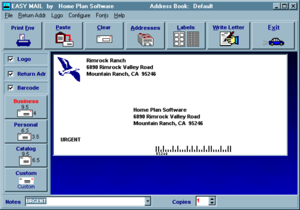 Type your message, and then just a few mouse clicks can fax it, print it, prepare an envelope and print a label. Best of all, leave your printer settings alone! Just stick an envelope where the paper goes and let Easy Mail handle the rest.