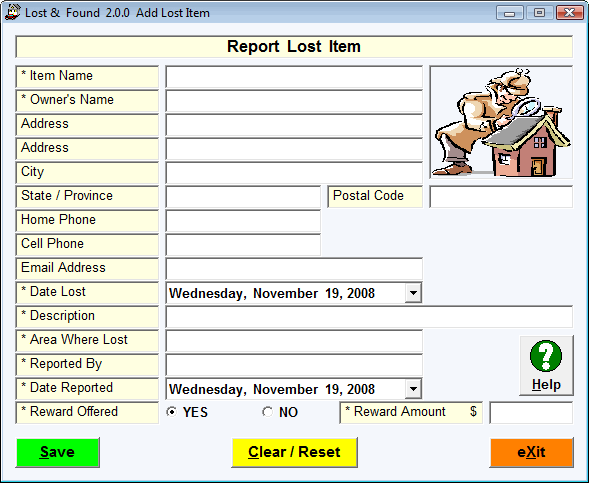 Lost & Found tracks and records lost and found items. Used by large and small businesses, non-profit organizations, hospitals, casinos, banks, shopping malls, etc.