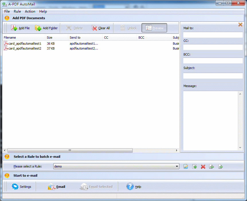 ...... A-PDF Automail also can extract PDF content and use it as a part of subject and body of email.