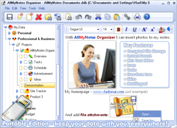 Keep your Notes securely on USB stick with AllMyNotes Organizer Portable