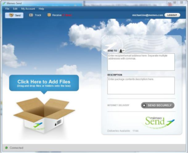 Memeo Send is like a digital UPS for business download files from a Web browser