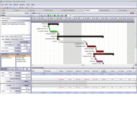 Ezy Estimator - fully comprehensive estimating, visual project scheduling and cost tracking software solution in one package. For contractors such as plumbing, carpentry, electrical, mechanical, landscape, masonry and concrete, painting, etc.