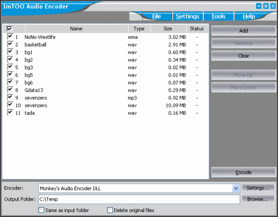 ImTOO Audio EncoderImTOO Audio Encoder is a powerful audio converter which can convert among MP3, WAV, WMA, MP4, M4A, AAC, OGG, etc., such as convert M4A to MP3, convert MP4 to MP3.Download Free Trial ( 2.65 MB )